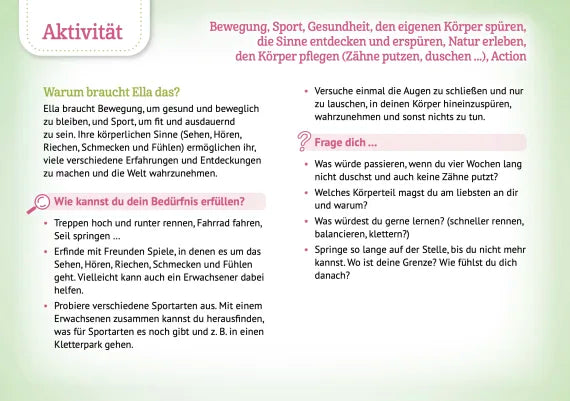 Wenn Ella sich nach Zuneigung sehnt, fühlt sie sich nach einer Umarmung gleich viel besser. So wie dem kleinen Monsterchen ist es bestimmt jedem Kind schon einmal gegangen. Gemeinsam mit Ella üben sie, ihre Bedürfnisse zu erkennen und über sie zu sprechen. Die Alltagssituationen auf den Impulskarten zeigen auf humorvolle Weise, wie diese erfüllt werden können – und was passiert, falls das nicht geschieht.