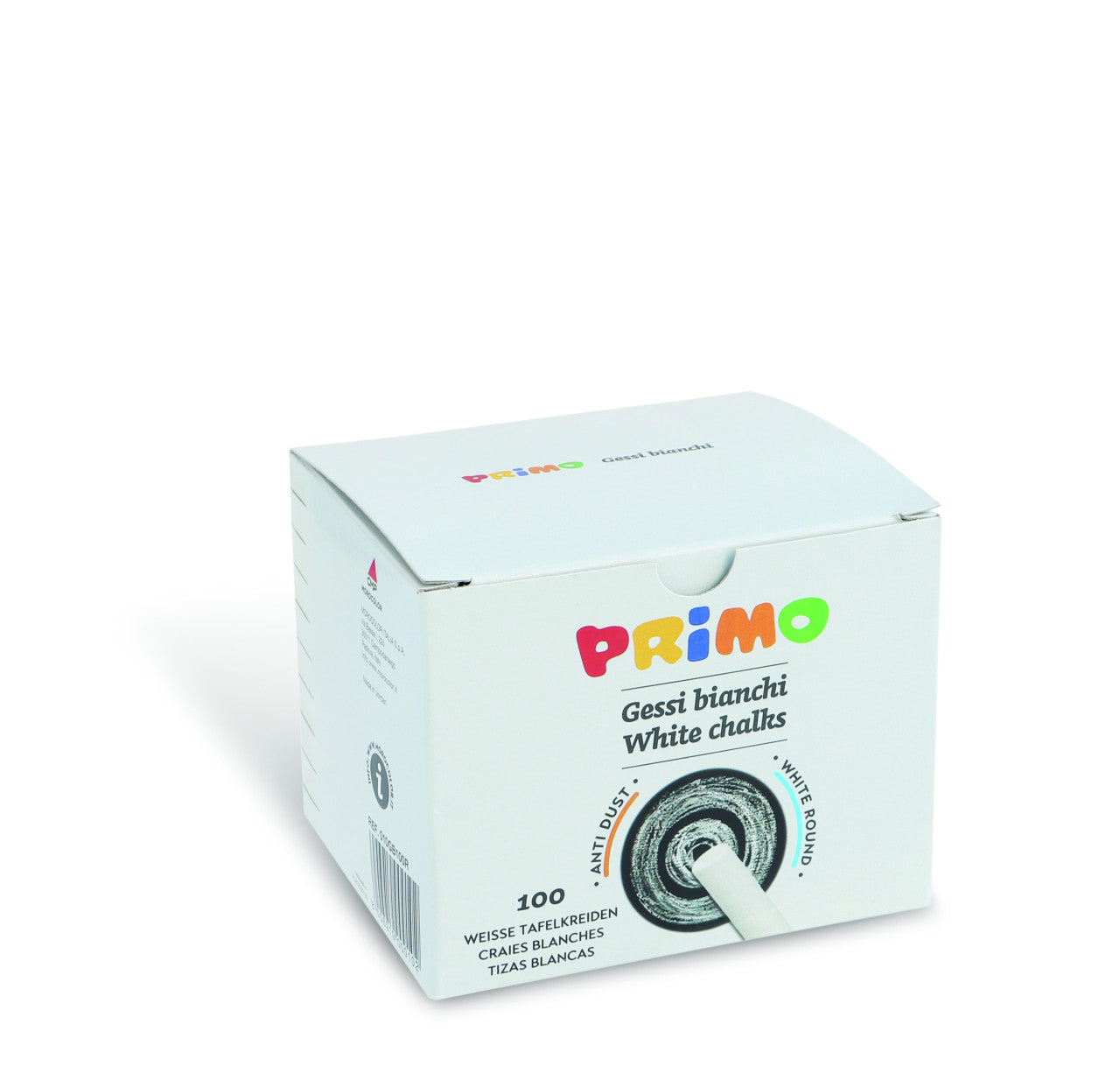 PRIMO Tafelkreide im 100er Karton. Die runde staubfreie Kreide hat einen Durchmesser von 9mm und ist 80mm lang