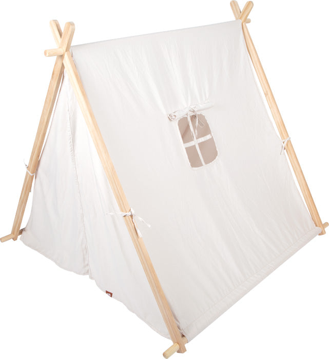 Spielen, träumen, entspannen! Dieses stilvolle Indoor-Spielzelt aus Holz und Stoff ist ein gemütlicher Rückzugsort für fantasievolle und kreative Spielstunden im Kinderzimmer. Mit seinem stabilen Holzrahmen und dem hochwertigen Stoffbezug lädt das Zelt zum Spielen, Lesen und Kuscheln ein. Durch das seitliche Fenster fällt Licht ins Innere, während die aufrollbare Zeltöffnung für ein offenes Raumgefühl sorgt. Ob als Treffpunkt um Freunde einzuladen und gemeinsam zu spielen, als zuhause für Plüschtiere und Puppen oder als gemütliche Kuschelecke – die Spielmöglichkeiten des Indoor-Zeltes sind vielfältig und beim fantasievollen und kreativen Spielen ergeben sich unzählige Spielmöglichkeiten für Kinder.