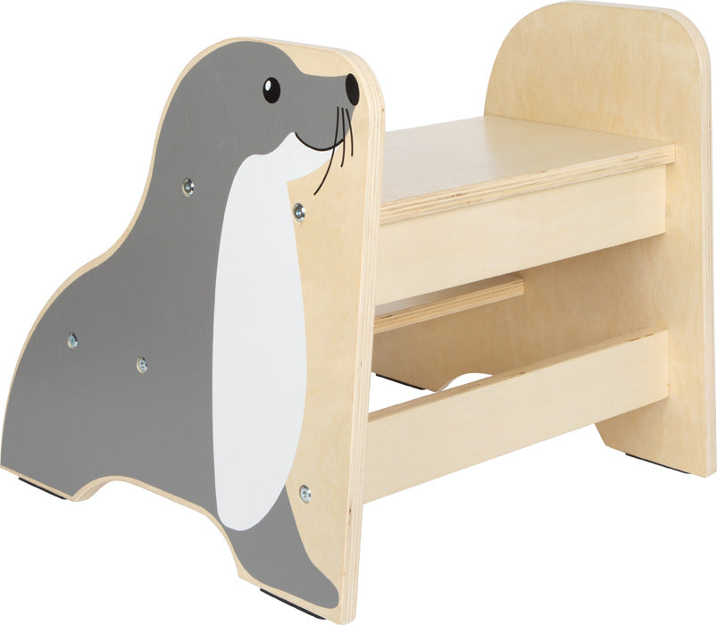 Kleine Helfer ganz groß! Mit dem stabilen Tritthocker im niedlichen Seehund-Design erreichen Kinder sicher und bequem erhöhte Flächen – sei es im Badezimmer, in der Küche oder im Kinderzimmer. Die robuste Konstruktion mit einer Tragkraft von bis zu 150 kg macht den Hocker auch für Erwachsene nutzbar. Sicheren Stand auch auf glatten Oberflächen garantiert die stabile Bauweise mit Anti-Rutschgummis an der Unterseite. Ein praktischer Alltagshelfer, der Kindern mehr Selbstständigkeit ermöglicht!