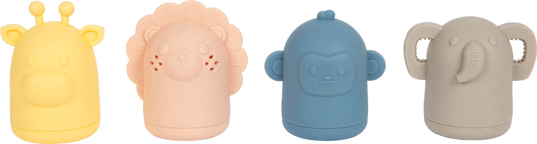 Planschen, spritzen, entdecken – sicher und hygienisch! Dieses 4-teilige Badespielzeug-Set aus weichem, BPA-freiem Silikon sorgt für großen Wasserspaß in der Badewanne, am Strand oder am Wasserspieltisch. Die liebevoll gestalteten Spritztiere – Löwe, Elefant, Giraffe und Affe – begeistern mit unterschiedlichen Texturen, haptischen Details und lustigen Spritzfunktionen, die Wasser aus verschiedenen Öffnungen versprühen. Für Eltern besonders praktisch: Jedes Tier lässt sich zur Reinigung einfach öffnen und komplett trocknen, damit das Innere hygienisch bleibt. Unzerbrechlich, weich und sicher bietet das Set Kleinkindern spannende Wasserabenteuer und fördert spielerisch ihre sensorische Wahrnehmung. Hergestellt aus lebensmittelechtem, BPA-freiem Silikon, sind die Tiere besonders weich, flexibel und unzerbrechlich – perfekt für kleine Kinderhände und leicht zu reinigen.