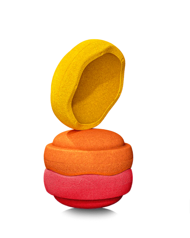 Starte mit dem Dreierset in erste Stapelspielabenteuer und verwende sie zum Beispiel für erste Farben- oder Zahlenspiele, als Sitzhocker, Schale oder für Wasserspiele.